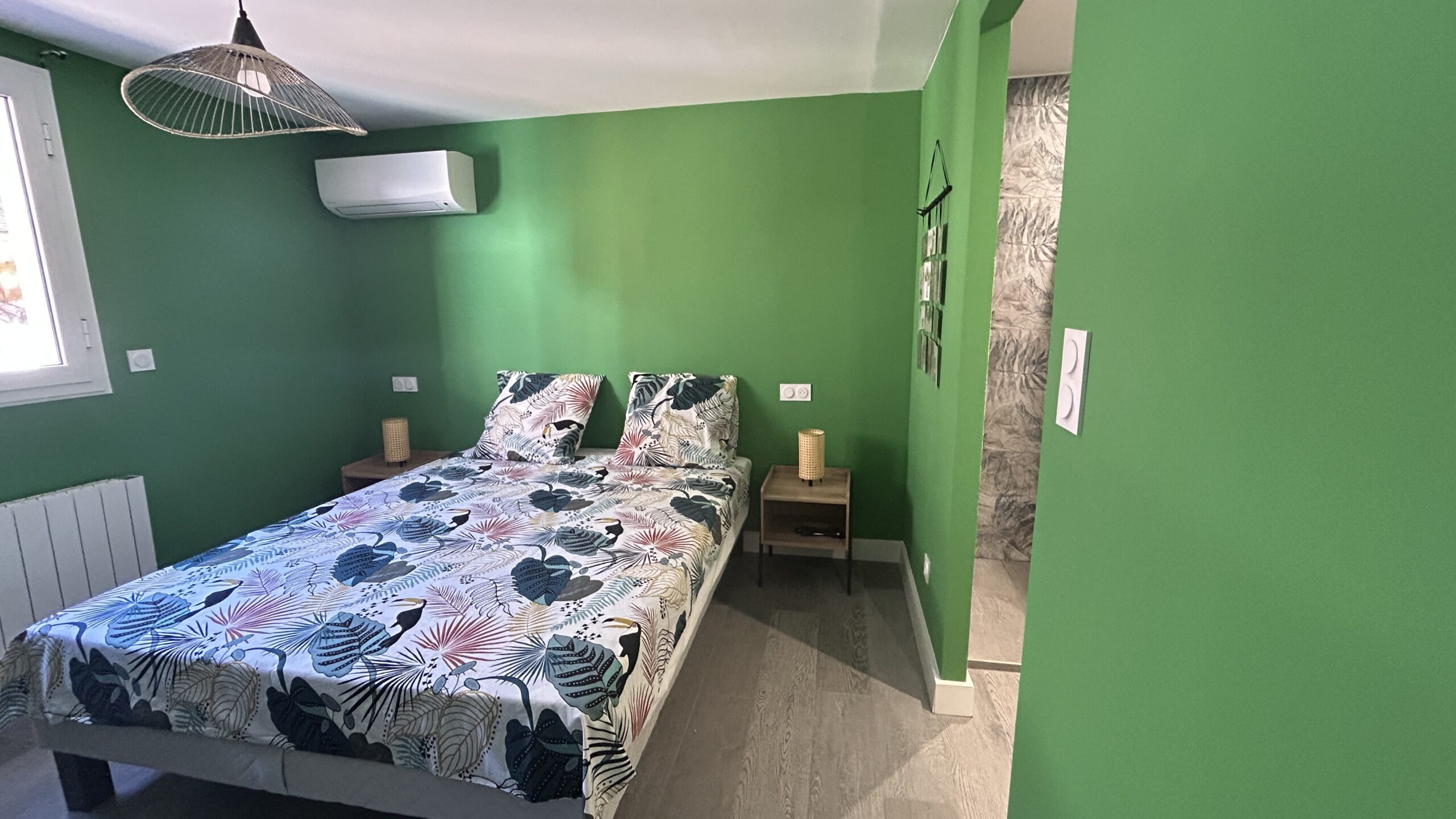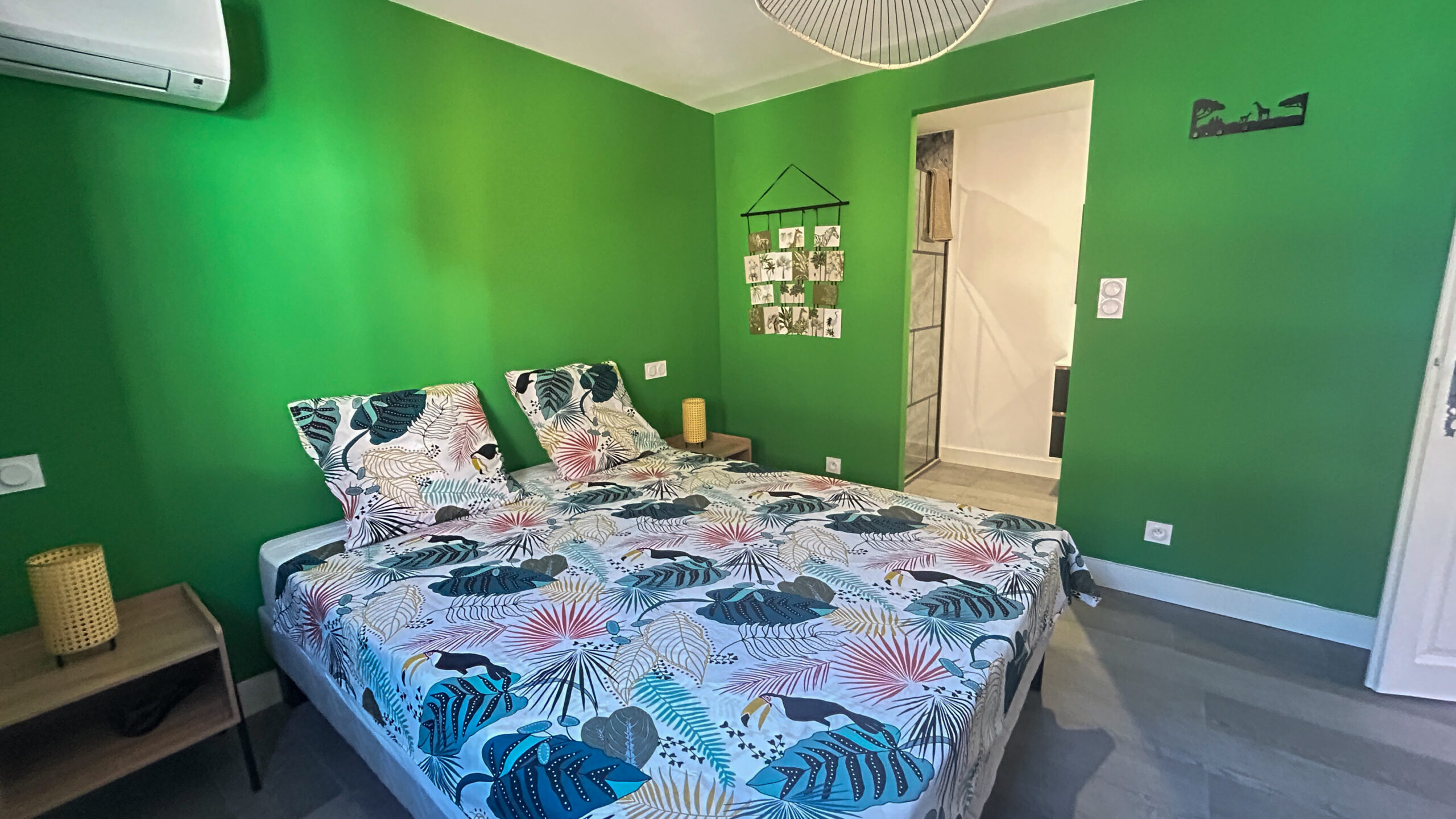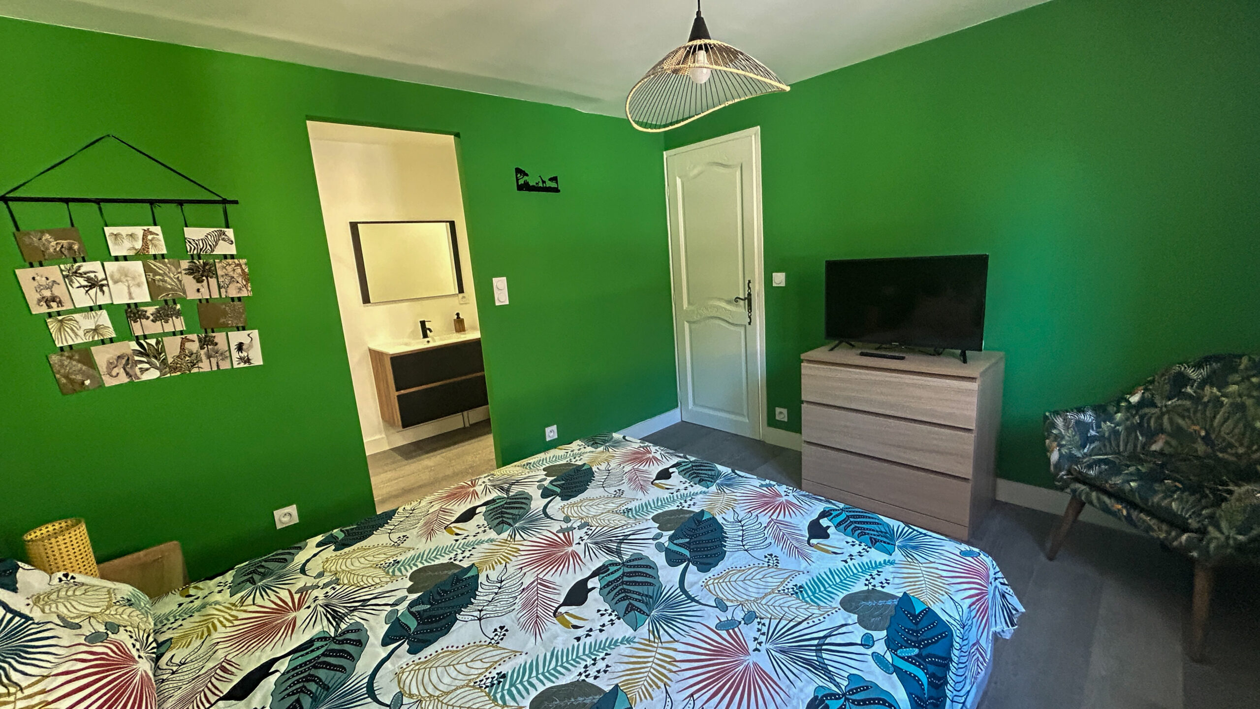 La chambre Amazone est un havre de paix au sein de notre maison d’hôtes. Les tons verts de la jungle sont apaisant et reposant.